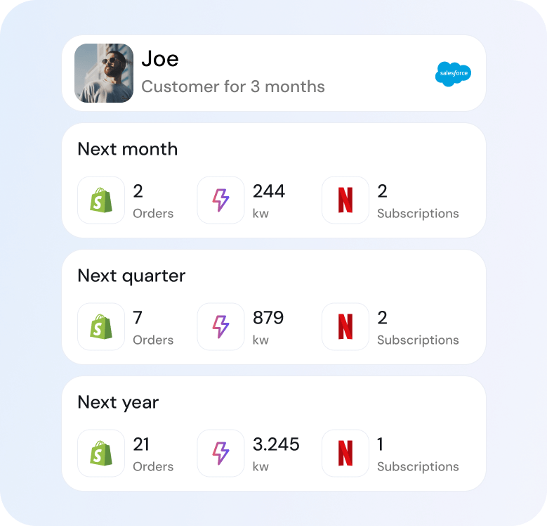 Predici quanti acquisti farà o quanto consumerà ogni cliente il mese prossimo, il prossimo quarter o i prossimi 12 mesi.
