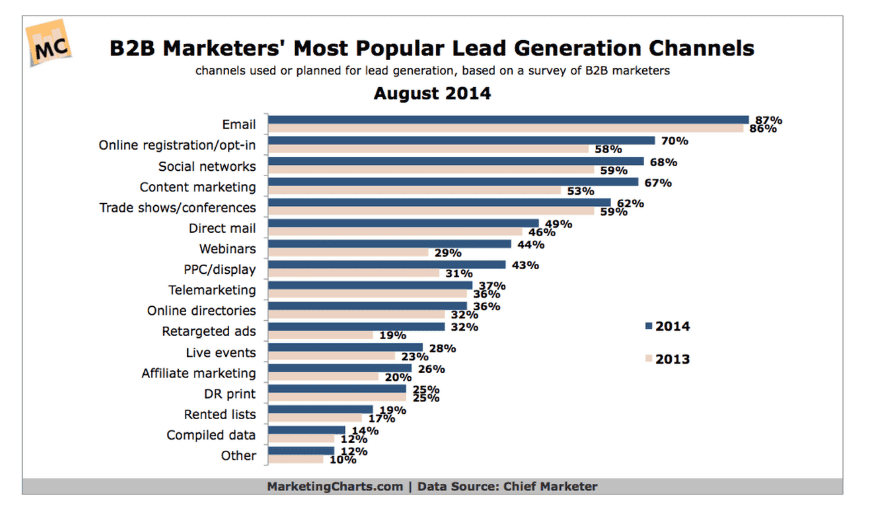 Ma i risultati di Chief Marketer’s Data riportano dati differenti, mostrando come vincitore assoluto sia il Direct Email Marketing, l’attività che ha le migliori performance nella creazione di Lead.