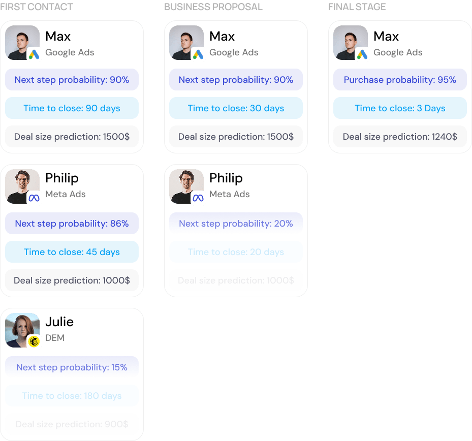 Elai predice in tempo reale la probabilità di conversione di ogni lead appena generato, permettendoti di: